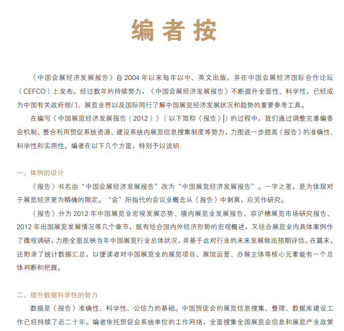 中国国际贸易促进委员会:《中国展览经济发展报告(2012)》