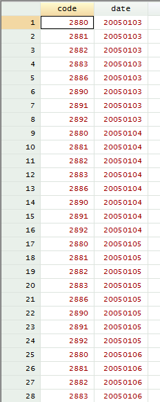 第一列是公司代码,第二列是日期。现在想要知道:某一日和其前一日的样本公司是否有变动? 也就是说,某一日比其前一日可能样本公司完全一样,如此则算无变化。如果样本公司个数有增加、个数有减少,或者总数不变部分个体变了,就算是有变动。换句话说,只要是和上一日不完全一样就算改变了。怎样在Stata中实现区分出某一日与上一日的样本公司是否改变?