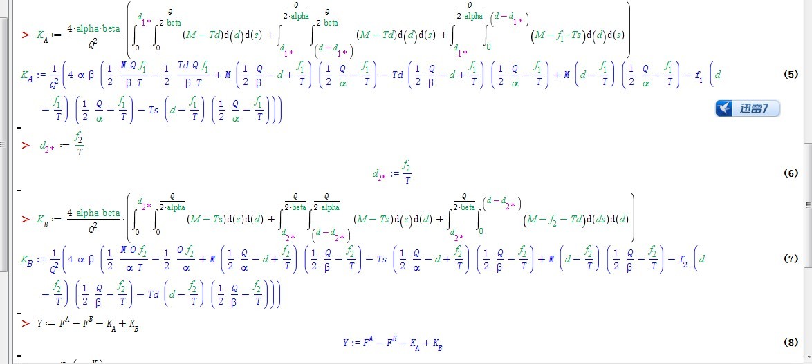 如下图,KA和KB为什么没在Y的式子(8)中表示出来?同样的d2*却可以直接代入到KB中(7)?