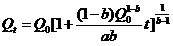 为表述简单起见,令你的Qt的公式是Qt=Q(t,a,b), 我想你有一组数据, 即t=t1时,Q(t1)观察值=q(t1), t=t2时,Q(t2)观察值=q(t2), ...t=t2时,Q(tn)观察值=q(tn)