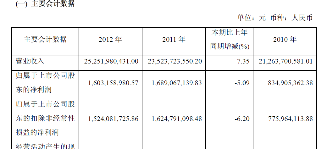 2012年财务报告摘要