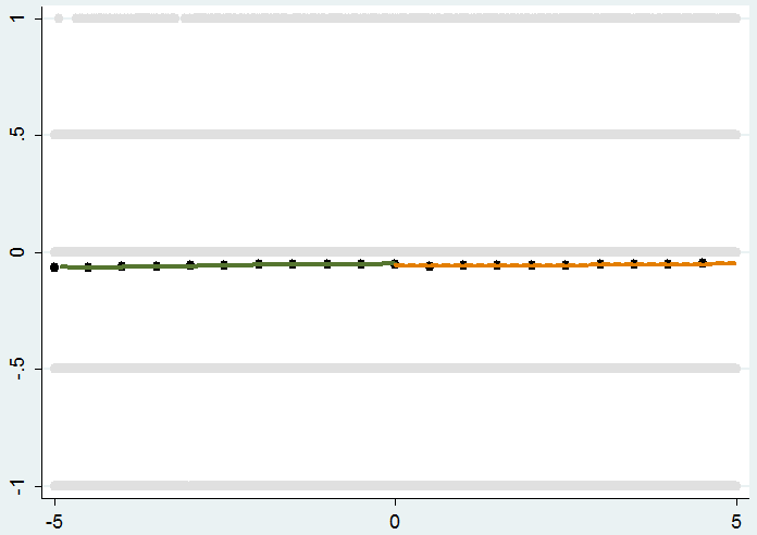 rd y z if inrange(z,-`j',`j'), graph scopt(ms(i) lc(gs14) lp(dash) || scatter `i'_`j'_mean bin_`j', ms(tiny) mc(grey))