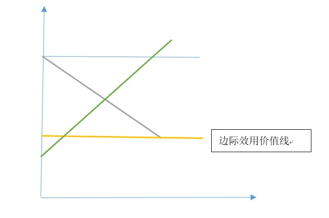 从上图可以看出,边际效用价值,也什么都没说明。价格收敛于均衡点,而非边际效用价值。为什么?因为它同劳动价值论一样,是只独脚兽,只不过只有需求(消费方)一条腿。