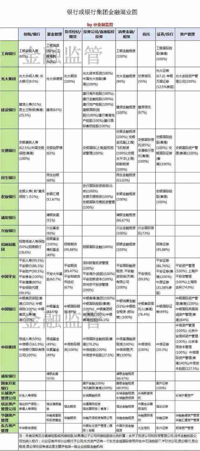 一张图了解银行集团的金融混业情况