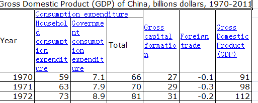 Gross Domestic Product (GDP) of China, billions dollars, 1970-2011.xlsx