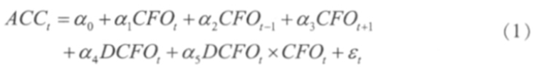 变量:ACCt为t 期的总应计除以t 期的平均总资产, 总应计等于净利润减去当期经营现金流;CFOt为t 期的经营现金流除以t 期的平均总资产;DCFOt:当CFOt- CFOt-1<0,DCFOt=1,否则等于0;回归1 的残差的绝对值,用来表示盈余管理的程度或盈余质量的高低,值越大表明盈余管理程度越严重或盈余质量越低。