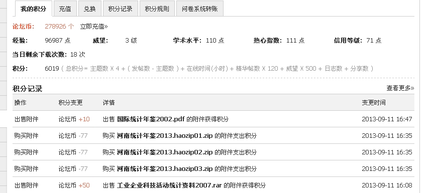 补充一点:我们的积分记录,就相当于银行或其他支付平台的个人账户收支记录,每一笔都应该是清晰可见、有据可查才对。更何况好多会员的论坛币是用现金兑换的。呵呵!