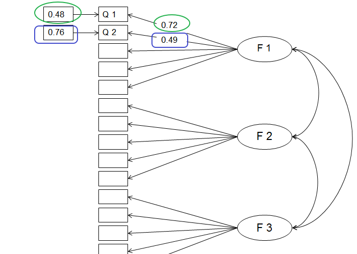 编制一个量表,用Lisrel进行CFA,得出的模型图中,测量误差与因子载荷之间有无内在的数理关系?(比如,可以利用某公式、由测量误差计算出因子载荷等)【如下图所示,绿色与绿色,蓝色与蓝色,有无内在的数理关系呢?】初学Lisrel,望高手不吝赐教。非常感谢。