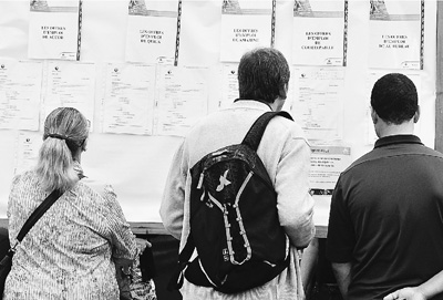 法国全国统计和经济研究所今年9月公布的调查数据显示,2013年第二季度法国本土失业率达10.5%,创1998年第一季度以来的新高。图为9月6日,法国北部利勒市昂格洛镇的失业者在看招聘启事。