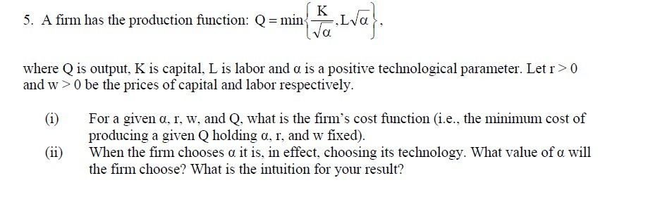 里昂惕夫生产函数,使K/a^0.5=L*a^0.5=Q,然后带入求解成本函数求解即可。