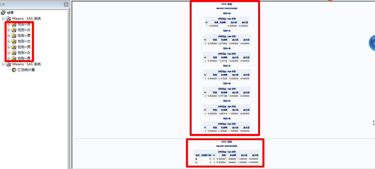 proc means data =sashelp.class; by sex notsorted; var age; run;