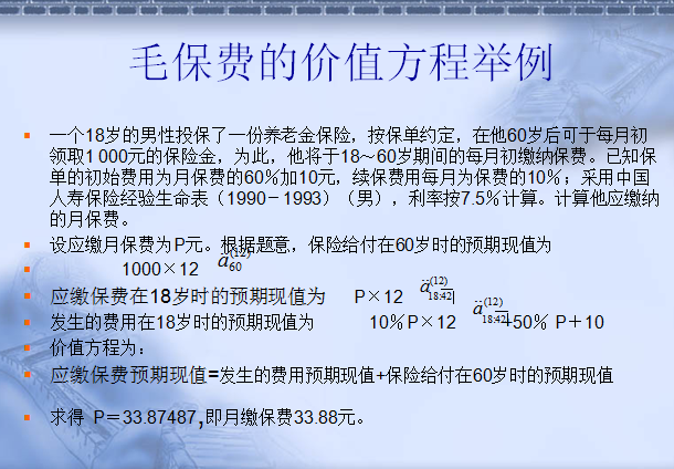 续保保费与初始费用的第一部分就形成了一个18岁起,42年期的年金。每次缴费10%P