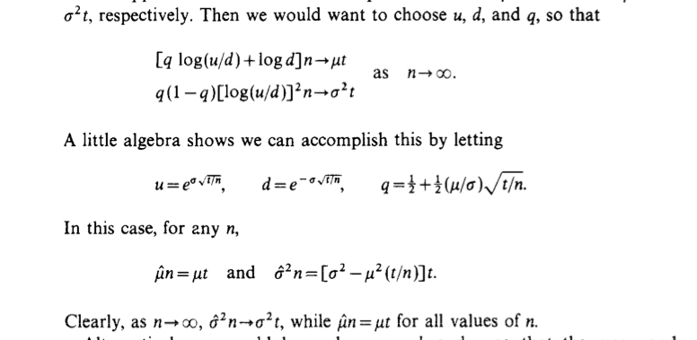 For more clear derivation, see CRR's original paper "Option Pricing: A Simplified Approach"(1979)
