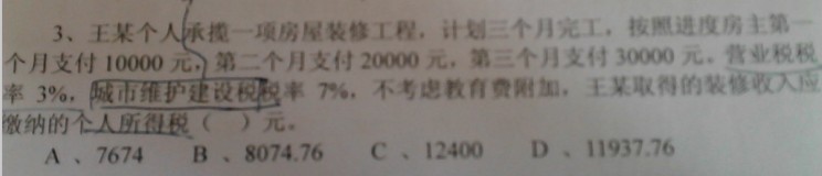 hero705 发表于 2013-11-5 14:20 我觉得不需要考虑增值税,业务属于建筑劳务,是营业税征税范围。 我的计算过程是这样的,三个月交纳营业税 ...