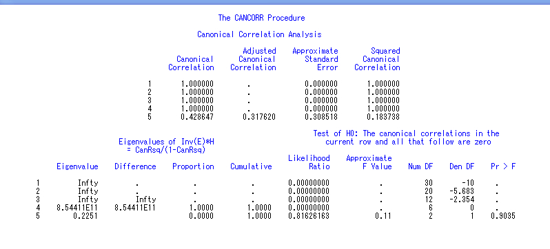 亲们帮我看看这个SAS典型相关分析的结果