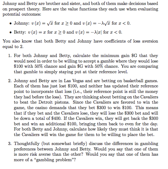Johnny和Betty是兄妹,他们两人都根据展望理论来做决定。两人的价值方程分别为: