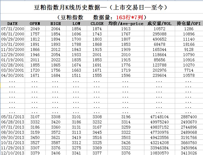 豆粕指数月K线历史数据(数据起止时间:上市交易日—至今).xls