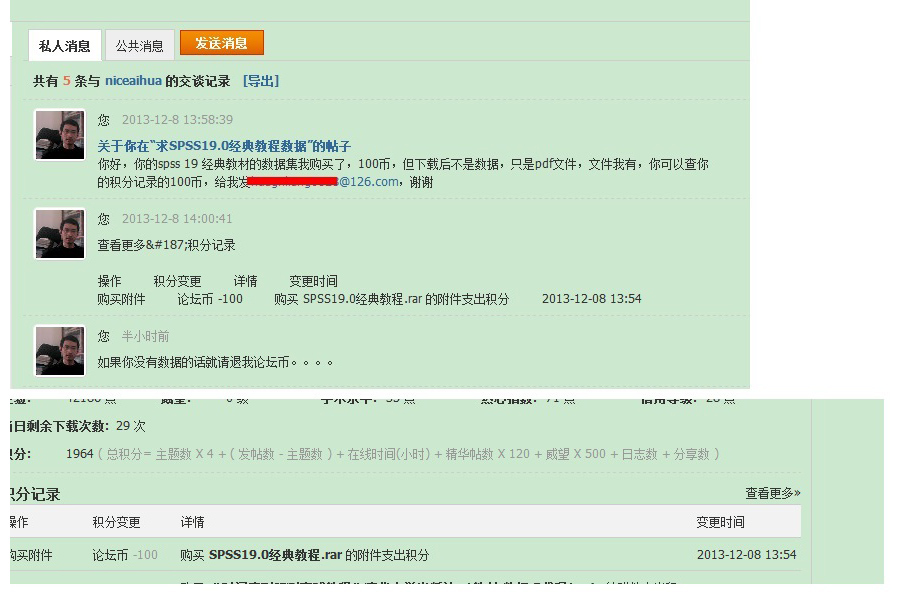 ,实际不是数据,是pdf文件。其售价100币,欺骗网友。 个人购买后发现不是数据,然后站内发短信与其联系,说明情况,哪知时隔5天他依然不理,而且显示他本人与今日登陆过论坛。