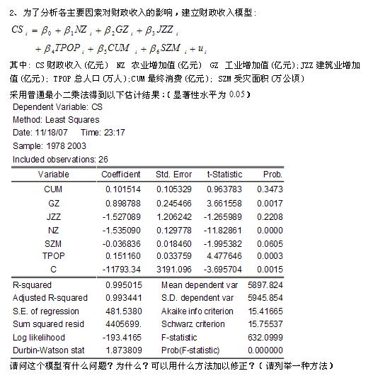 瘠北幼农 发表于 2013-12-15 20:33 就题目来看,就两个变量不显著!自相关性,异方差性等需要其他步骤进行检验,从结果看不出来!