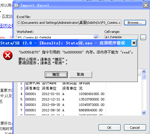 zj20000101 发表于 2013-12-28 10:50 楼主,你试试在stata12中用这个命令: *只能在Stata12中运行 import excel "C:\FS_Combas.xls", sheet(" ...
