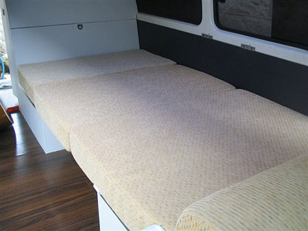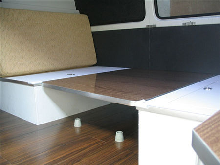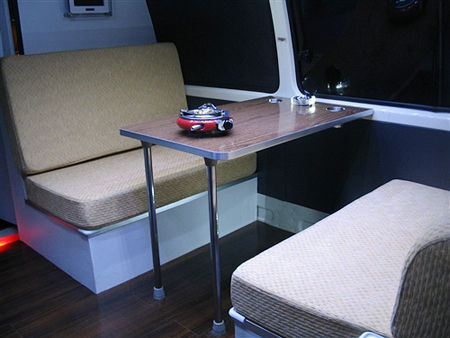 房间——床是如何变出来的? 将餐桌的支架去除,用餐桌的桌面结合沙发形成了床板