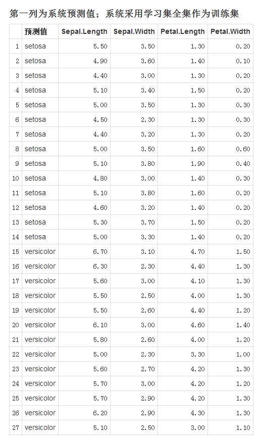 请首先点击 "样本数据下载", 在这里你可以下载我们今天要使用的样本数据, 即R中著名的鸢尾花卉数据集(iris data set), 鸢尾花卉数据集的主要任务是通过观测花萼(sepal)和花瓣(pedal)的长度(length)和宽度(width) 来判断花所属的亚属(山鸢尾(setosa) vs.变色鸢尾(versicolor) vs.维吉尼亚鸢尾(virginica)),是典型的模式识别任务.