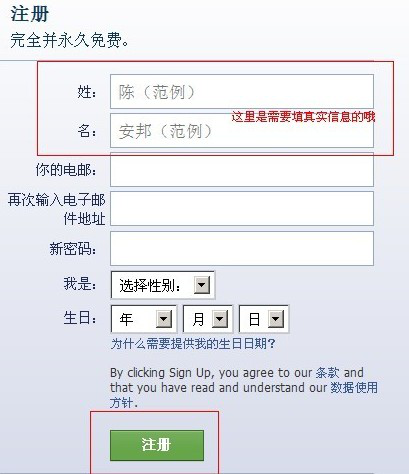 注:这上面都要填写真实的信息,facebook是实名注册的,这个姓名也要和手机号是一个姓名的哦