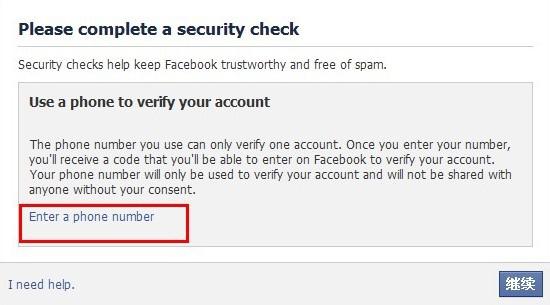 第三步:首页的东西都填写好了之后点击注册就会出现这样一个界面(如下图):说你需要输入一个电话号码。点击Enter a phone