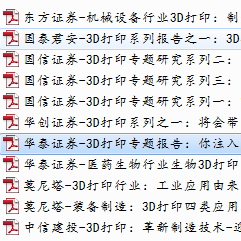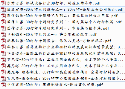 个人整理的有关3d打印方面的研究报告和资料(详细见图下)