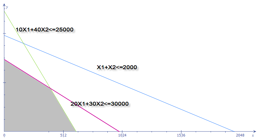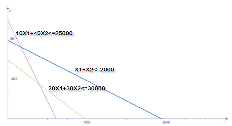 该直线是斜率为-1,在X轴的截点为(2000,0),在Y轴的截点为(0,2000),X轴和 轴中间的任意一点均可以满足该约束条件。