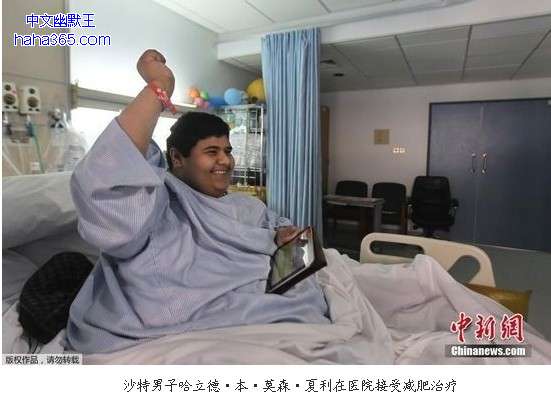 当地时间2014年2月13日,沙特利雅得法哈德王储医学城,沙特男子哈立德·本·莫森·夏利(Khalid bin MohsenShaari)在医院接受减肥治疗。2013年8月,沙特国王阿卜杜拉下令让夏利从南部边境吉赞省(Jazan)转移至首都利雅得接受减肥治疗。当时夏利不到20岁,但体重却达到610公斤。自治疗以来,目前他已经减掉约320公斤。