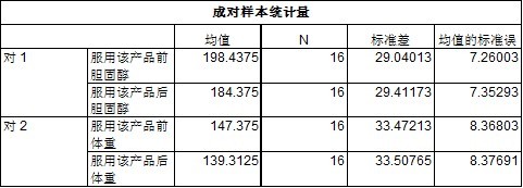 对于这3个表,所需要关注的信息其实不是很多,重点只需关注表3 的关键数据。      表3中的均值那一列是配对样本的平均差值,服用该产品前后的胆固醇平均相差了14.0625,而体重则平均相差了8.0625;重点关注最后一列的数据Sig.(双侧)那列,主要是为双尾检验概率p值,在置信水平为95%时,显著性水平为0.05,第一组的双尾概率p值为0.249,大于0.05,故零假设成立,可以认为服用该产品前后的胆固醇没有显著差异,即说明了服用该产品对降低胆固醇没有效果;第二组的双尾概率p值为0,小于0.05,拒绝零假设,可以认为服用该产品前后的平均体重有显著差异,即服用该产品对降低体重有显著效果。      从该数据分析中,可以得到了一个很关键的结论:服用该产品对降低体重有显著的效果。说明广告里面的产品应该不是骗人的。这下算是明白了T检验的作用了吧。      在进行促销活动评估中,对于评估促销活动是否对用户有显著的效果,建议可以从T检验进行分析一下(当然,要做T检验,首先要让数据服从正态分布,如果不是的话,可以尝试使用数据标准化或相关处理……),而不仅仅是从促销前后的数据上升了多少,提高了多少个百分比,新增了多少个客户,或者把数据变换一下做得更好看就上交。而应该更关注不同促销活动对用户影响程度是否显著进行总结,以便把那些促销显著效果的活动进行归档,对日后的工作提升有更好的帮助。