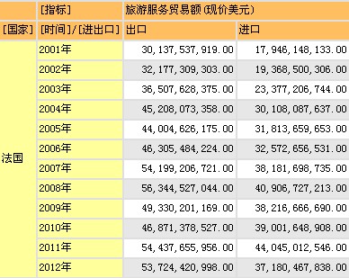2012年法国旅游服务贸易额数据,同样是截图.