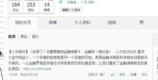 目前最爱看《华尔街》,因为可以正确的认识全球金融危机和各种证券交易等