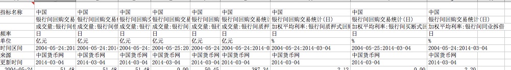 小V的生活 发表于 2014-3-5 20:18 都是日度指标,后缀月的为通过平均值变频的月度值 指标有