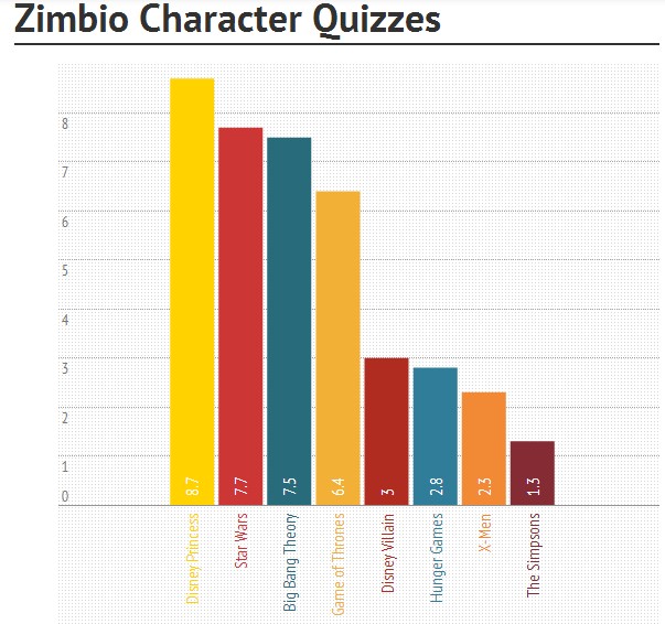 Zimbio是一家娱乐新闻网站,他们称自己通过创造这些测验,在两个星期内,使自己的流量翻了四倍之多。