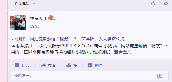 3.凡分享到其他网站(包括校内网等),帖子保留一天以上的,奖励100论坛币。