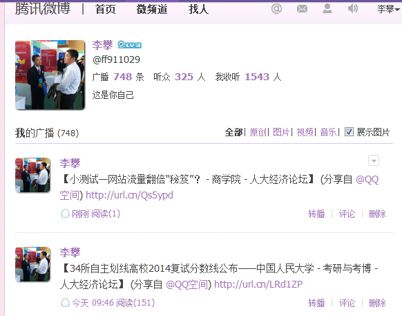 2.凡分享到微博,您的粉丝在100人以下的,视情况奖励10-40论坛币;100-300人的,奖励50论坛币(每群限奖励一次);300人以上的奖励60-100论坛币。