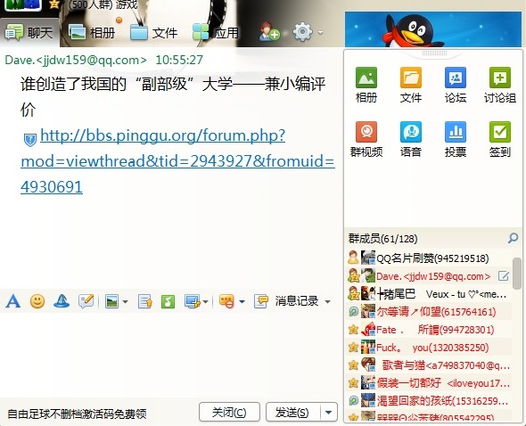 1.凡分享的QQ群,人数在100人以下的,视情况奖励10-40论坛币;100-300人的,奖励50论坛币(每群限奖励一次);300人以上的奖励60-100论坛币。