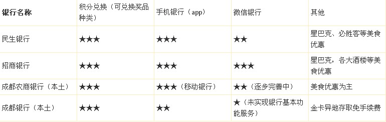 不过话说回来,既然大家都在四城耍,在成都生活,自然还是尽量选择成都本地,或者本地有大支行的银行,合作商家多不说,还时常有一些优惠活动。
