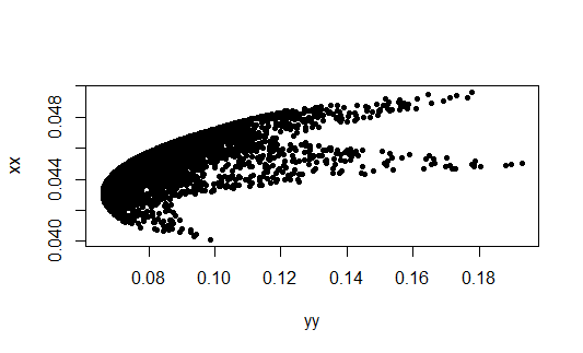 plot(yy,xx,pch=20)