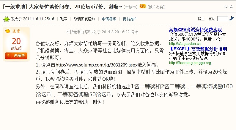 cheung_sh 发表于 2014-3-20 16:41 问卷已填写,请楼主验收