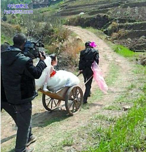 这是一辆质朴的小推车,两个轮子,两个把手,新娘在里头,新郎在外头,那段崎岖山路的尽头,是他们的新家。昨天,这辆质朴的小推车一出现,就让网友直呼“有创意”。