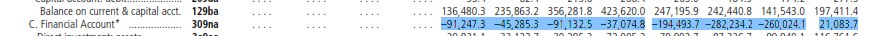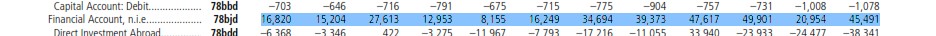 这是2008年IFS报告里面1997到2008的financial account 的数据: