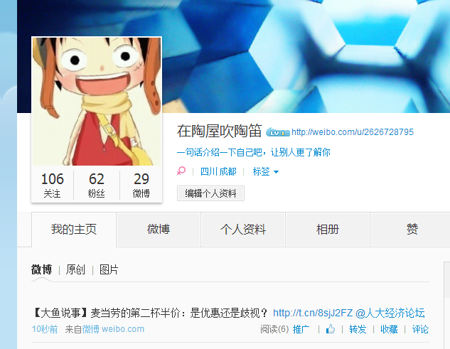 ,把本贴推荐到QQ群或自己的微博(最好@人大经济论坛),然后跟贴贴出链接或截图,证明已作推广的,将获得如下论坛币的奖励!