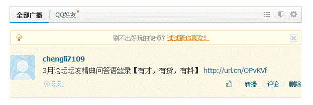 2.凡分享到微博,您的粉丝在100人以下的,视情况奖励10-40论坛币;100-300人的,奖励50论坛币(每群限奖励一次);300人以上的奖励60-100论坛币。