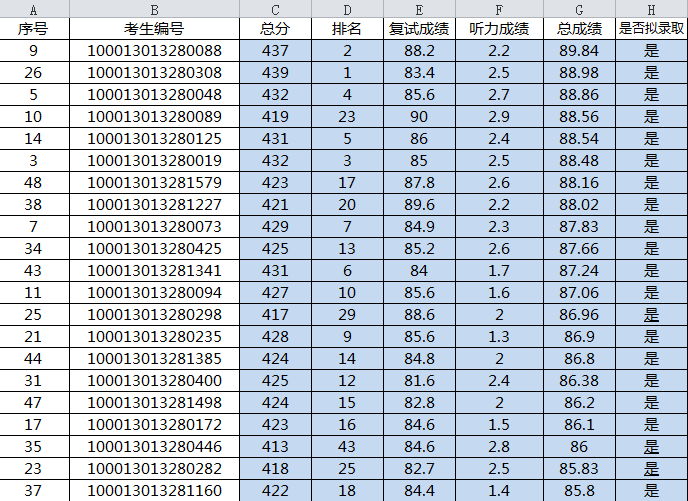 经同学支出,特意贴出2013年的录取情况,尤其是复试成绩这一项,差别还是非常大的。