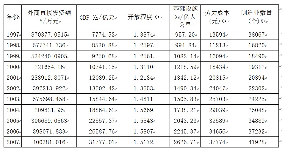 EViews结课论文是:广东省交通运输业吸引FDI影响因素实证分析。找了相关数据,如下表