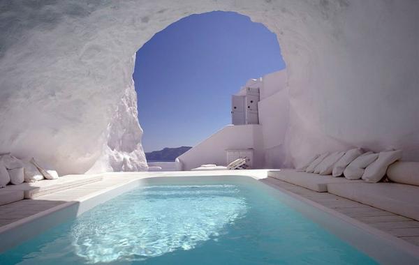 14. 在希腊圣托里尼岛,徜徉在洞穴泳池中。