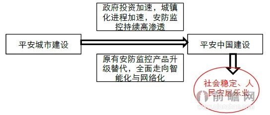 在今年的十八大三中全会中,《中共中央关于全面深化改革若干重大问题的决定》明确提出:创新社会治理,必须着眼于维护最广大人民根本利益,最大限度增加和谐因素,增强社会发展活力,提高社会治理水平,全面推进平安中国建设,维护国家安全,确保人民安居乐业、社会安定有序。 安防产业将定位于民生投资的地位,其产品切身关系到社会安全与人民安居乐业,无论是公用事业投资还是民用市场,它都将长期为群众带来益处。 从政策导向看,三中全会指明了安防产业的方向,平安城市已经上升到平安中国的层面。安防产品将不仅仅是视频监控类产品,系统级产品将成为未来的主要方向。安防监控将与社会运营、信息中心、大数据、云计算紧密的联系在一起。